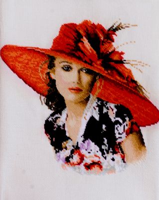 Вышивка девушка в шляпе Виктория 26 цветов Канва Аида-14 Нитки Мулине DMC (хлопок) Использовала набор для вышивания (производство Англия). Серия: Elegance. Дизайнер: John Clayton (Джон Клейтон) Без рамки (оформлю при необходимости). Также я высылаю вместе с вышитой картиной вот такой красиво оформленный лист.