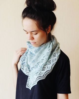 Небольшой изящный шейный платок с ажурной каймой Пряжа ручного крашения (а значит это только добавляет уникальности платку ;D) 100%меринос