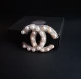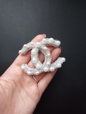White brooch, brooch embroidered with river pearls. Handmade brooch, embroidery Brown Brooch Beaded. Pin brooch. Gift for her