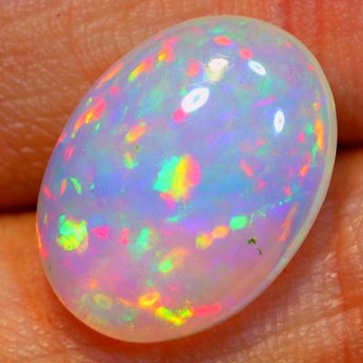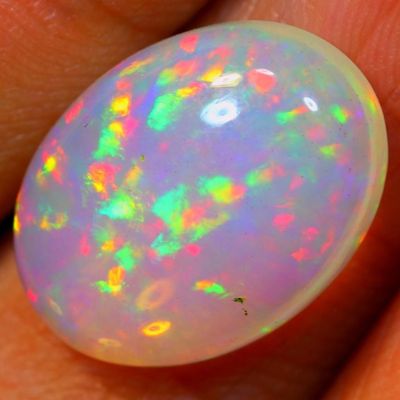 Яркий эфиопский кристальный опал, 4,75 карата, очень своеобразный паттерн "prism",, 15.6x11.5x5.4 мм, в кольцо или кулон с инкрустацией бриллиантами.