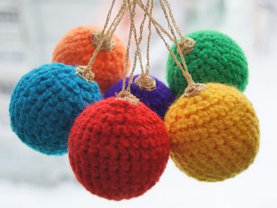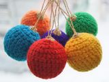 Очень уютные и яркие ёлочные шары. Диаметр - 6 см. Цвета - жёлтый, оранжевый, красный, голубой, фиолетовый, зеленый. Внутри - пенопластовая основа. Безопасны для дома, где есть детки - мягкие, не разобьются. Отлично подойдут в качестве подарка! Цена за 1 шарик - 40 руб.