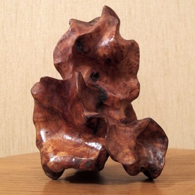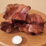 Для нас это работа-загадка. Мы долго думали, что это, но так и не решили. Ее можно ставить и использовать по-разному: поставить свечу, хранить кольца и цепочки, просто радоваться и любоваться. Мы не меняли естественную форму этой вещи. "Так природа захотела, а зачем - не наше дело", как говорил Булат Окуджава. Статуэтка изготовлена без применения лаков и красок. Ручная полировка дерева. Изделие существует в единственном экземпляре, повторение невозможно.