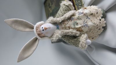 Текстильная игрушка (хлопок, вискоза, шерсть), наполнитель синтепух. Может двигать ручками, умеет сидеть и стоять. Аксессуар наушники съемный.