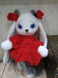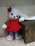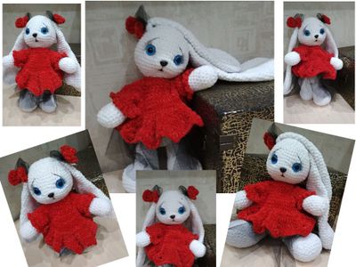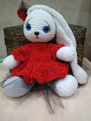 Зайка-девочка готова к переезду. . Связана из микрополиэстра. Рост 28 см.Глазки -безопасное крепление.Наполнитель холлофайбер. Может самостоятельно сидеть .Стоит с опорой. Очень мягкая приятная на ощупь. Возможно повторение в любом цвете или изготовление мальчика-Зайчика.А так же дополнительные одежки