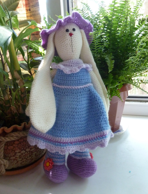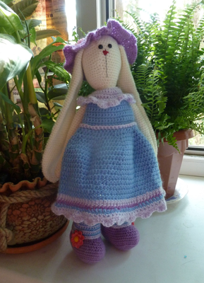Изделие выполнено из пряжи "Детский каприз": 50% меринос - 50% фибра. Платье и шляпка съемные. Стоит с опорой. Рост- 33 см. Возможно выполнение на заказ в другом цвете.