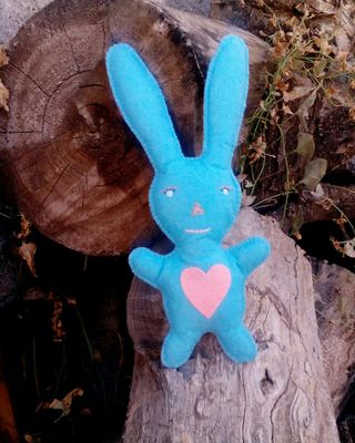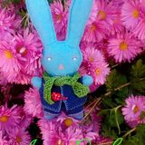 Вот такой зайка сегодня получился у меня . Рост зайки 24 см сшит из фетра набит синтепоном . Шарфик связан из ниток мулине Одежда у зайки снимается .