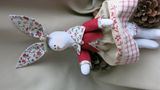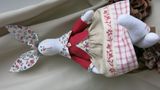 Текстильная игрушка (хлопок, лен), наполнитель синтепух. Может двигать ручками, умеет сидеть, ножки гибкие.