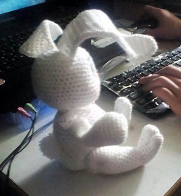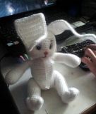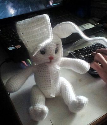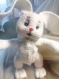 Вязанная игрушка Пряжа полушерсть, наполнитель холофайбер, глазки акриловые, в ушки вплетена бижютерная проволока, что дает возможность изменять положение ушка