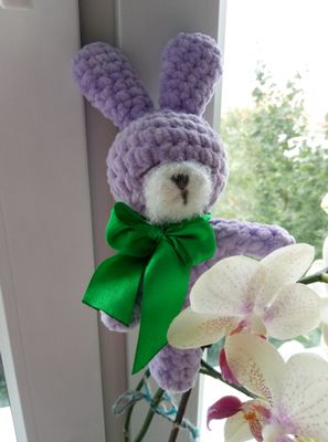 Маленький 20 см, мягкий, очень приятный зайка, хороший подарок для деток. Могу повторить в любом цвете