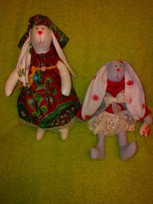 Зайки Тильда высота 25 см, выполнены в единственном экземпляре, глазки и носик вышиты, изготовлены из натуральных тканей преимущественно х/б, мягкие и приятные, по желанию на ушке можно вышить Имя кому хотите подарить или памятную дату)