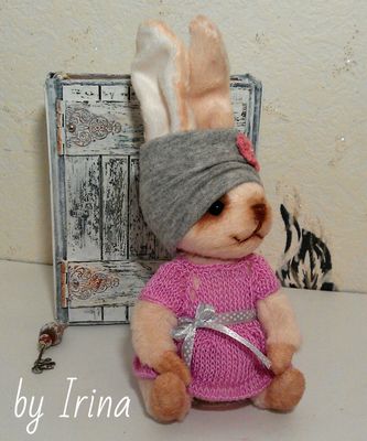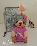 Авторская выкройка.Материалы:плюш Вельбоа,холлофайбер.Платье связано из хб "ириса". Голова на шплинте, ручки и ножки на ниточном креплении. Высота сидя-12см,с ушками-19см.