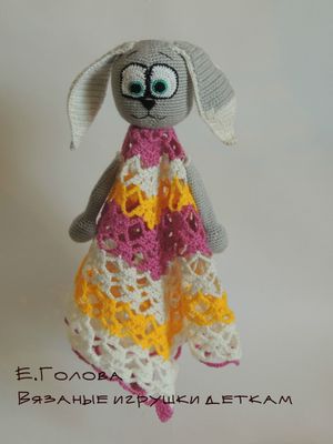 Замечательная весенняя заюшка-сплюшка с белым ушком. Дама немного капризная - несмотря на все старания, глазки получились косенькие. Мордочка вышитая. Сплюшка (она же комфортер) - специальная игрушка-салфетка, пропитанная запахом мамы. Игрушка, пропитанная маминым запахом, помогает крохе чувствовать себя комфортно,засыпая в кроватке. Рекомендации по уходу: ручная стирка Срок изготовления 3-4 дня.