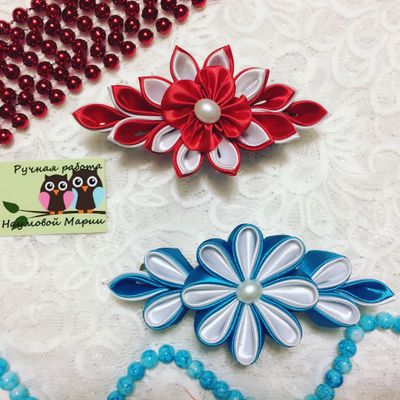 Заколка выполнена в технике канзаши из атласных лент