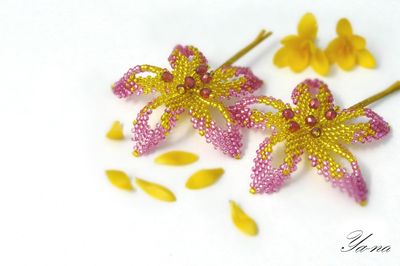 Интересные цветочки для заколок-невидимок красиво украсят вашу прическу или прическу вашей дочери. В наличии есть и розово-желтые цветы, и розово-серебристые. Сделаю под заказ в любых цветовых решениях. Размеры можно сделать больше или меньше. Цена указана за пару. В работе использован японский бисер, чешские граненые бусины Срок изготовления 1 день
