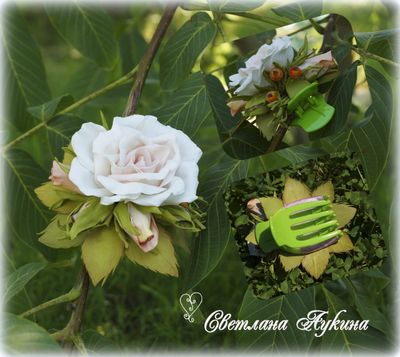 Заколка украшена розочкой и бутончиками роз из фоамирана. Удобно крепится на волосах. Не боится влаги и солнца.