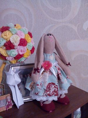 Рост зайки 30 см . Возможно исполнение в любой цветовой гамме . Как для мальчика так и девочки . Сошью наряд для зайки по вашему желанию. Срок исполнения 2 недели.