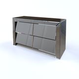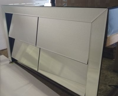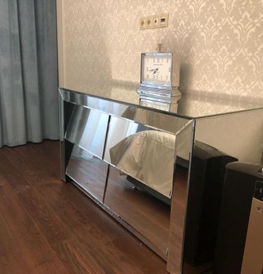 Комод зеркальный материал корпуса: ЛДСП 16 мм (серый) задняя стенка: ДВП 4мм облицовка: зеркало 4мм (серебро) обработка: фацет 10мм фурнитура: BLUM (с доводчиками) ножки: 4шт. 500х1400х800