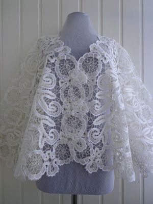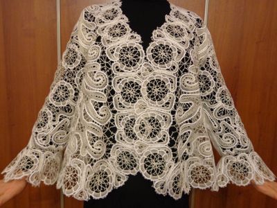 сплетен в технике "Елецкое кружево" Рисунок с цветочным орнаментом. Идеальный фасон для больших размеров. Скрывает все недостатки фигуры . На заказ любого размера два варианта:1. "Пелеринка-экрю",2"Пелеринка-беж"