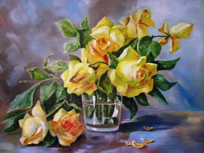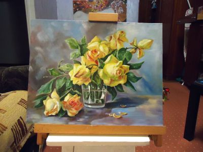 Картина маслом "Желтые розы". Холст на картоне. Размер 50х40. Картина украсит ваш интерьер или же станет отличным подарком на любой праздник! Дополнительно понадобится оформить картину в раму. Картины в наличии нет, но возможен повтор.