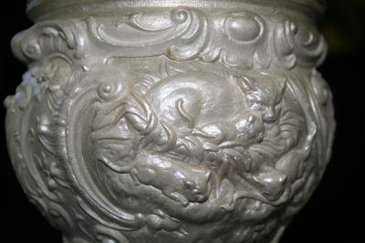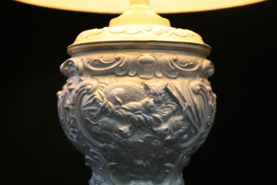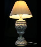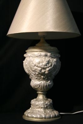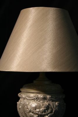 Эта лампа безусловно станет жемчужиной Вашего интерьера! Копия старинного светильника- работа неизвестного мастера - конец 19 века, ограниченная серия выпуска. По-настоящему эксклюзивная вещь! Основание выполнено из полимерного камня - это ударопрочный и экологически чистый материал, не вызывающий аллергии. Окрашено акрилом - жемчуг с позолотой. Абажур обтянут шелковой тканью цвета шампань. Лампа Е27, мощность 40Вт. Спешите сделать заказ!