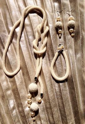 Комплект из мелкого жемчужного чешского бисера. Браслет, серьги, лариат