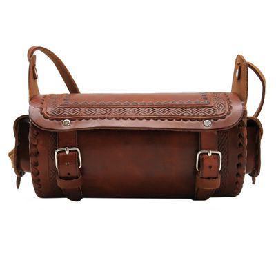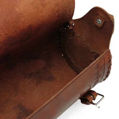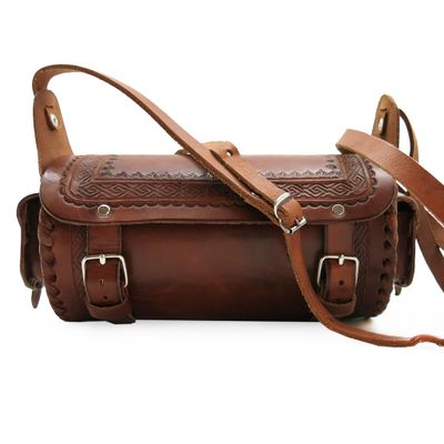 Женская кожаная сумка через плечо из натуральной кожи с изящным плетением и застежками-ремешками. Ручная работа. Закрывается на два ремешка. Внутри одно большое отделение. По бокам сумки маленькие кармашки для хранения мелких вещей. Длиный ремешок позволяет носить сумку на плече или через плечо. Стильная фурнирура подчеркивает особый стиль Mexico. Размер: 22 х 12 х 11 см Материал: натуральная кожа Цвет: коричневый (ручная работа)