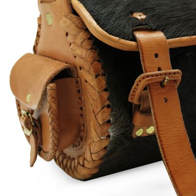 Кожаная женская сумка через плечо с меховой отделкой и изящным плетением. Ручная работа. Закрывается на два ремешка. Внутри одно большое отделение. По бокам сумки маленькие кармашки для хранения мелких вещей. Длиный ремешок позволяет носить сумку на плече или через плечо. Размер: 22 х 12 х 11 см Материал: натуральная кожа Цвет: коричневый (ручная работа)