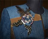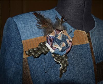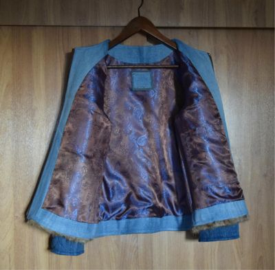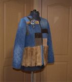 Стильный жакет для уверенной в себе женщины. Выполнен из джинсовых, кашемировых, шерстяных, смесовых тканей в стиле бохо в технике лоскутное шитьё и стёжка по синтепону. Мех - ондатра, застёжка - молния, шёлковая подкладка. Съёмная брошь из ткани и перьев фазана. Есть внутренний карман. Размер 46