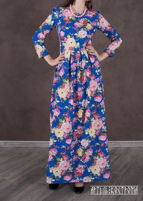 Женское платье макси из яркой джинсы. Размеры 34-44. Длина платья от талии 105-110 (шьется по Вашему росту). Возможен пошив другой расцветки. С тканями Вы можете ознакомиться в нашей группе вконтакте Сроки пошива от 7 до 12 дней (зависит от выбранной ткани, многие ткани мы заказываем из других городов)
