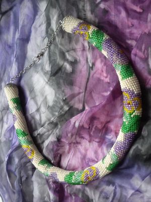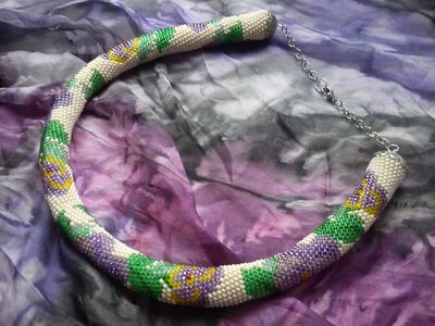 Яркий жгут из чешского бисера с цветочным рисунком.