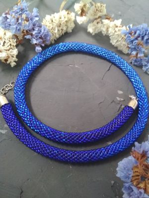 Жгут с градиентом от ультрамарина до василькового цвета. Подойдет как вечерний образ, так и под джинсы. 45 см в длину, в диаметре 8мм