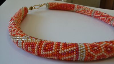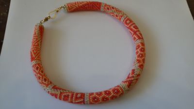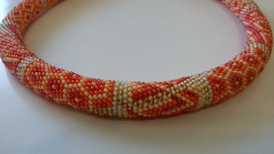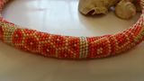 Жгут-колье "Апельсиновая нежность" связан из качественного чешского бисера в нежно-оранжевых тонах. Металлическая фурнитура. Длина жгута 47 см с застежкой. Жгут станет прекрасным дополнением к вашему наряду, освежит и наполнит летним настроением