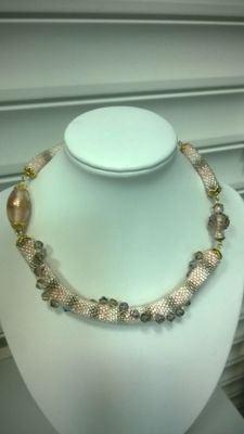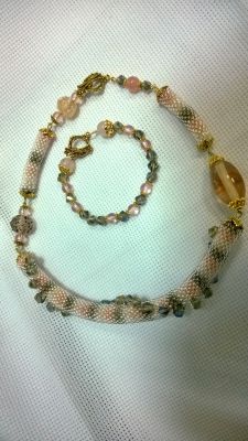 Жгут из чешского бисера и бусин.Можно носить длинным или коротким с браслетом отдельно.