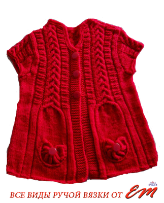 Красивый, нарядный жилет, согреет вашу очаровательную принцессу в холодную, ненастную погоду. Для примера, можно повторить в любом цвете и размере. Цена зависит от размера.