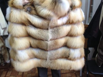 жилет из лисы с капюшоном