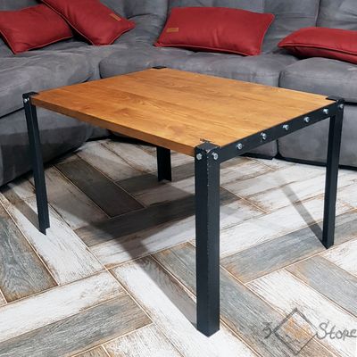 Название: Журнальный столик - 9Болт / 9Bolt Стиль: Лофт (Loft), Размер: 82 х 62 х 50 см (ДхШхВ) Материал: дерево (массив ясеня, масло, воск), сталь