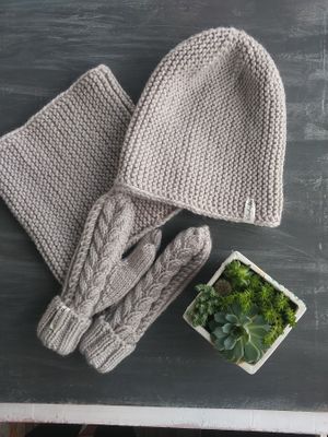 Комплекты - шапка, варежки, снуд ручной работы из полушерстяной пряжи, дополнят ваш неповторимый образ. Возможны различные варианты исполнения как по цвету так и по составу пряжи. Срок изготовления: 5-7 рабочих дней без учета выбора пряжи. Размеры ОГ - 48-51 Рекомендации по уходу - Только ручная стирка. Сушить в разложенном виде в дали от источников тепла.