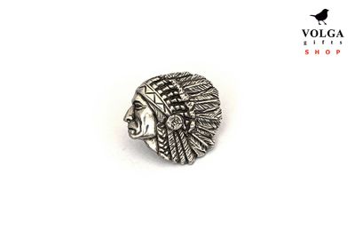 Значок Индеец выполнен из экологически чистого материала Пьютер. Это сплав на основе олова, который не теряет свой внешний вид с течением времени. Размер значка 25мм. Крепление цанга-бабочка.