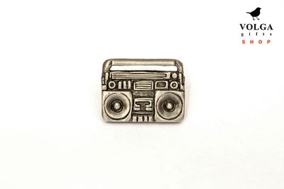 Значок Магнитофон выполнен из экологически чистого материала Пьютер. Это сплав на основе олова, который не теряет свой внешний вид с течением времени. Размер значка 25мм. Крепление цанга-бабочка.