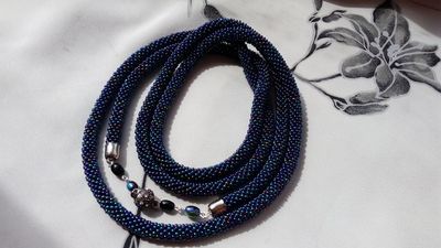 Лариат из радужного темно-синего чешского бисера. Магнитный замочек. Чешские радужные бусины