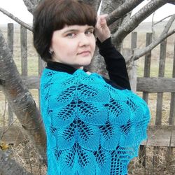Ажурная шаль вязаная пуховая Туманный Ноябрь, шаль спицами
