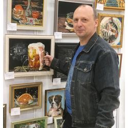 Картина маслом «Крымский мост» Картина маслом «Попугай Ара» Картина маслом «Натюрморт с пивом» Картина маслом «Портрет каракала» Картина маслом «Портрет ёжика» Картина маслом «Автомобиль AURUS» Картина маслом «Карпы кои» Картина маслом «Мотоцикл Харли Дэвидсон»